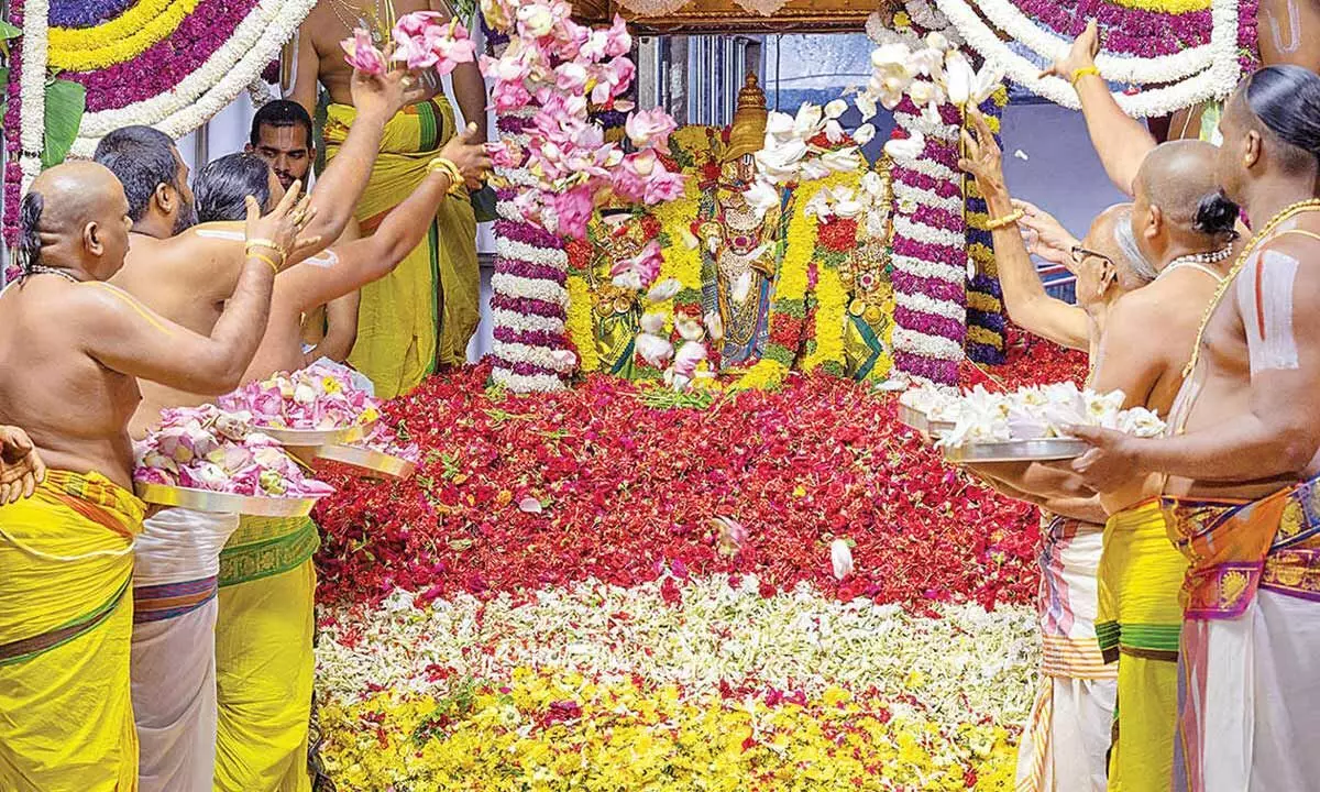 He noted that the tradition dates back to the 15th century and was revived by TTD in 1980 after a long hiatus. The utsava deities were offered a ceremonial floral bath using 16 varieties of flowers and six types of leaves. Devotees contributed a total of nine tonnes of flowers, including five tonnes from Tamil Nadu and two tonnes each from Karnataka and Andhra Pradesh.