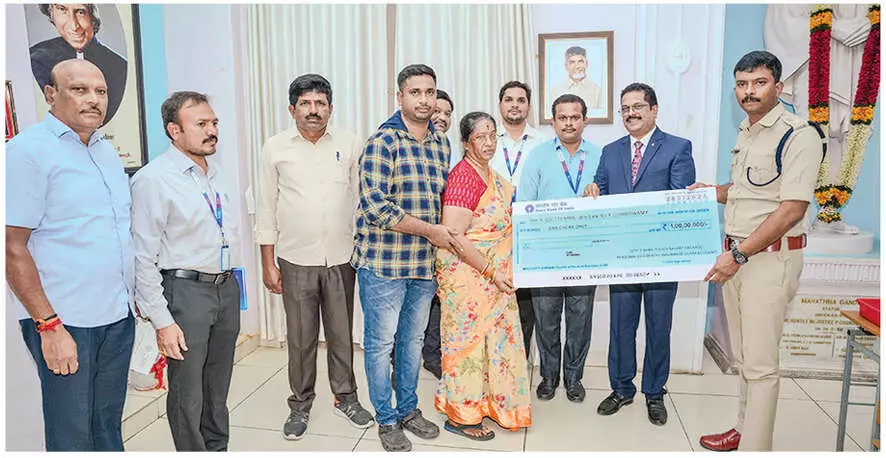 In a heartfelt gesture, the State Bank of India (SBI) on Monday handed over an accidental death insurance cheque of Rs 1 crore to the family of late ASI Y Guruswamy, who tragically lost his life in a road accident while on duty near Appalayagunta on March 12 this year.