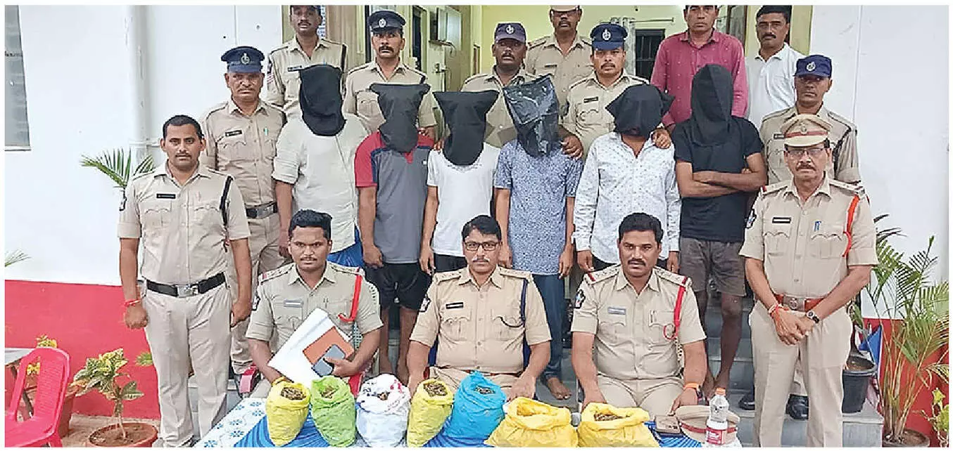 Podili: The Podili police successfully arrested a six-member gang involved in ganja trafficking and seized 8.065 kg ganja worth approximately Rs 96,000 on Tuesday.