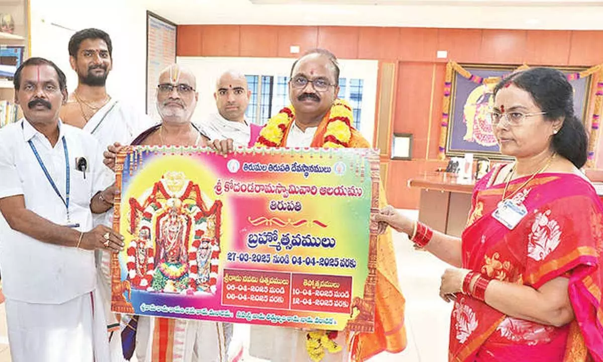 Speaking on the occasion, the EO said that the annual Brahmotsavam of Tirupati Sri Kodandarama Swamy temple will be held from March 27 to April 4.
