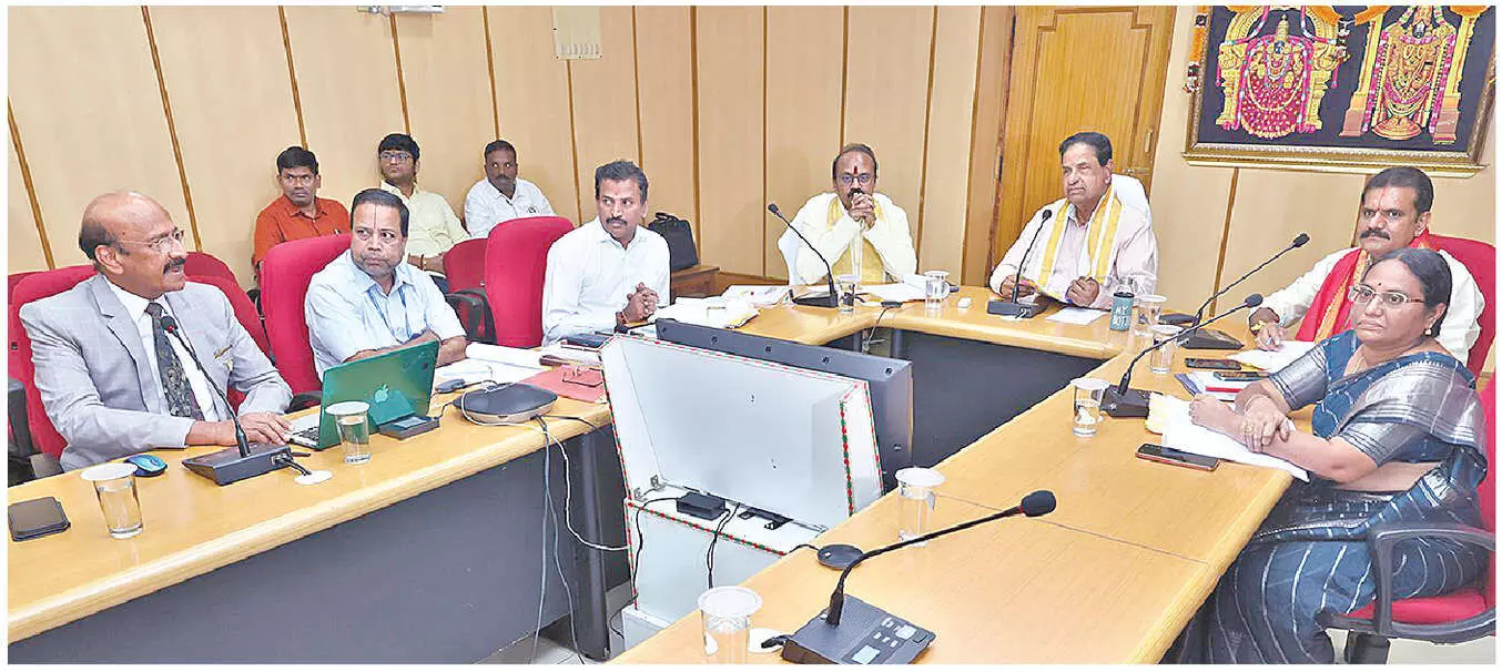 TTD Board Members Nannapaneni Sadasiva Rao, T Janaki Devi, Dr Adit Desai, JEO V Veerabrahmam, FA & CAO O Balaji, and other officials took part in the meeting.