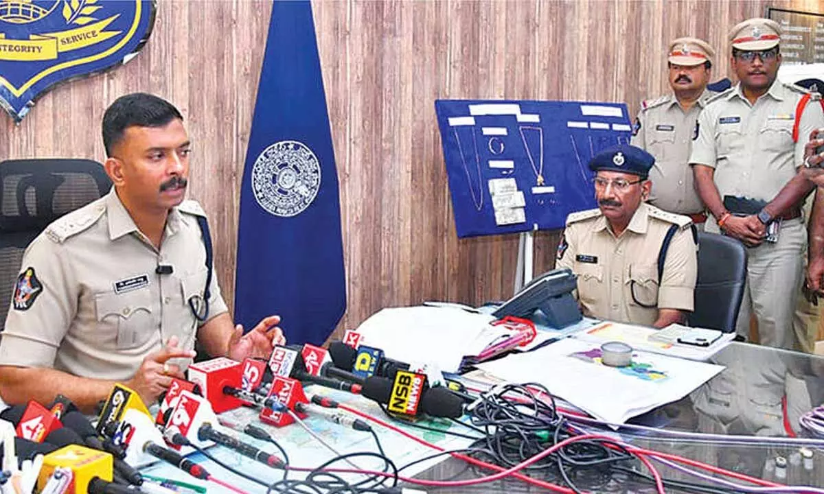Explaining the case and arrest details at the District Police Office, District Superintendent of Police V Harshavardhan Raju said the incident occurred on November 27 at around 10 pm at Brindavanam Kalyana Mandapam in Ongole. The complainant, Gundavarapu Kishore Kumar, was performing his daughter’s wedding at the venue, and kept with him a bag containing 158 grams of gold jewellery and Rs 1.35 lakh in cash. Some identified persons took the bag and left the place by the time he went into the pandal to bless his daughter and son-in-law.