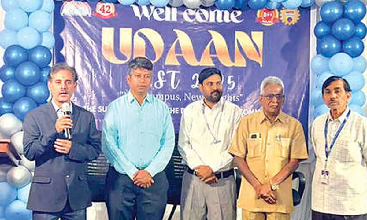 Rajamahendravaram: Udaan2K25 fest was organised at Aditya College of Commerce under the leadership of Principal KV Sriram. Head of the Management Department of Adikavi Nannaya University, Dr N Uday Bhaskar attended the event as the chief guest. Speaking on the occasion, he said more such programmes should be conducted to motivate students and enhance their awareness. Aditya Educational Institutions Director SP Gangireddy advised students to develop their creativity and make the best use of such platforms. Principals of Aditya institutions, Ch Phani Kumar, Anand, Prasad and Chandrasekhar also addressed the gathering.