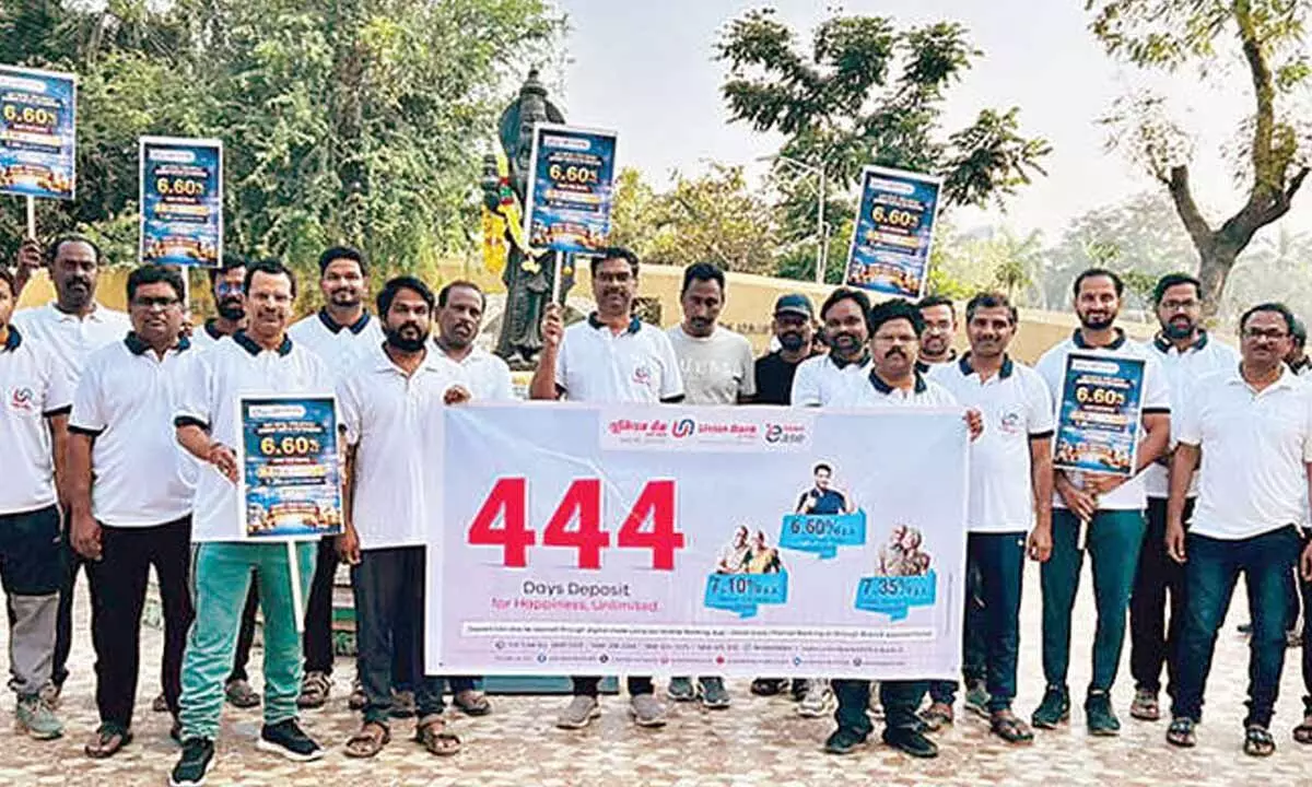 Bhimavaram: Union Bank staff organised a bike rally to create awareness among customers about the bank’s newly introduced deposit scheme. Following the rally, an awareness meeting was held for public near Veeramma Park.