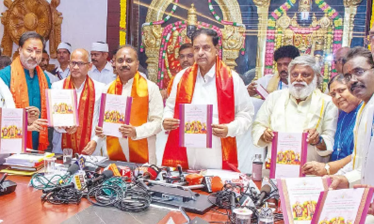 Tirumala: The TTD chairman BR Naidu along with EO J Syamala Rao released the booklet of Sri Rama Navami annual Brahmotsavam at Vontimitta in YSR Kadapa district at Tirumala on Monday.