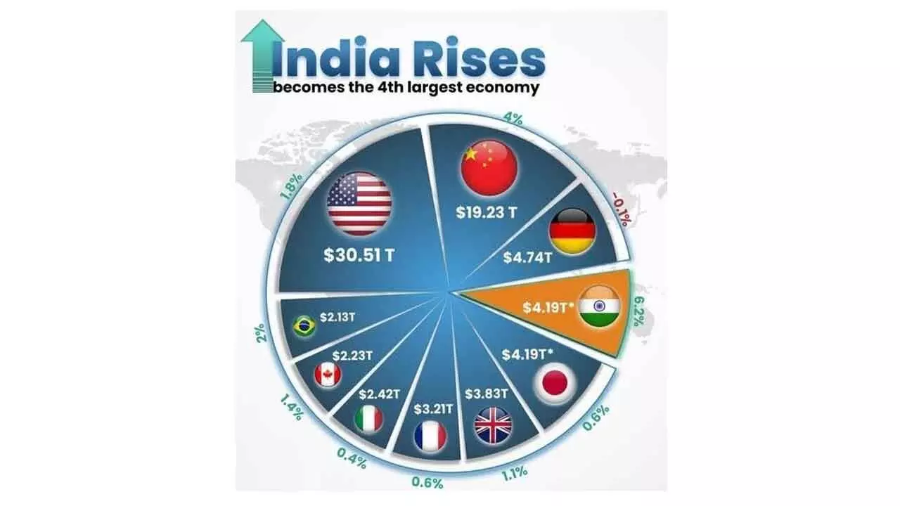 New Delhi: India has surpassed Japan to become the world's fourth-largest economy with a size of $4.18 trillion and is poised to overtake Germany to become the third largest by 2030, the Union government has said.