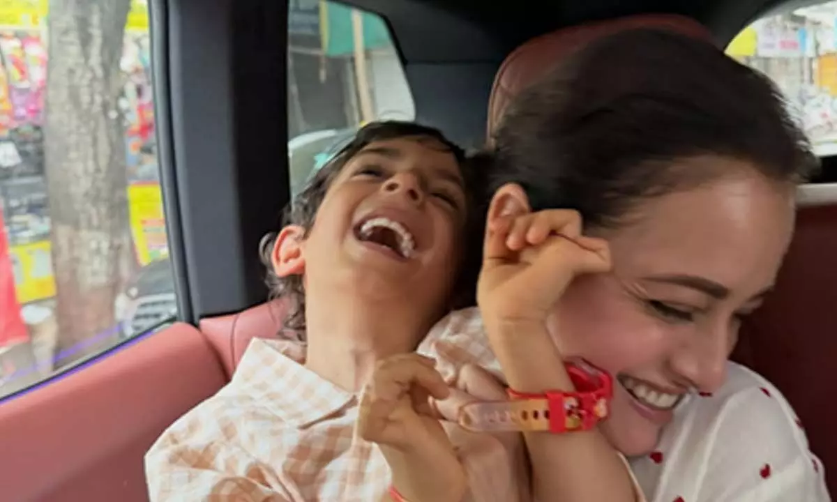 In the last still, Dia was clicked, sharing a candid laugh with her son in the car.