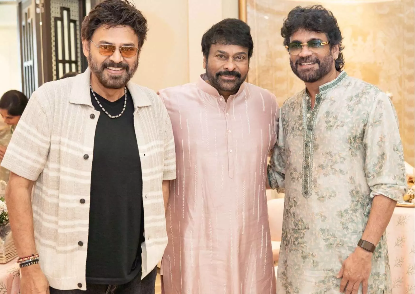 He posted a picture with Nagarjuna, Venkatesh, Nayanthara, and their families.