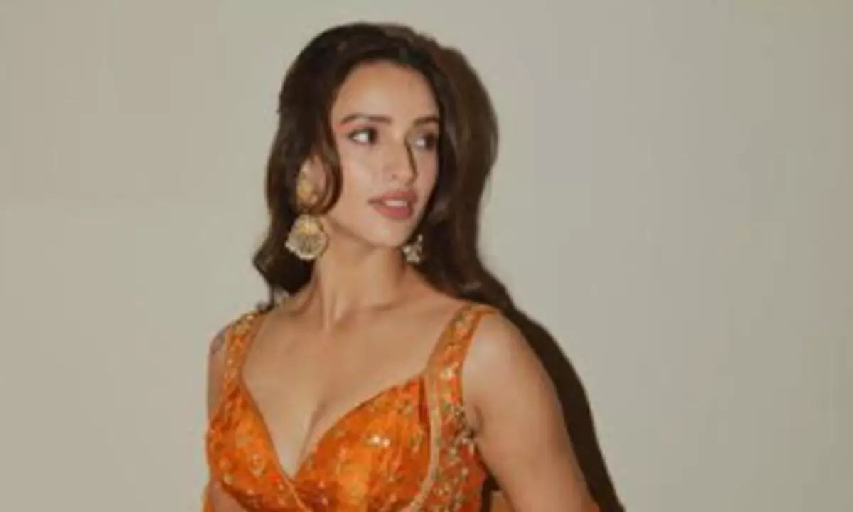 In the pictures, Tripti is seen dressed in a graceful orange traditional outfit adorned with intricate golden detailing. The sleeveless ensemble enhances her elegant appearance, while golden bangles and matching earrings add a regal charm to the overall look. Keeping her styling minimal, she left her hair open, complementing the outfit perfectly. Soft makeup with pink-toned lipstick and a natural glow completed the look, giving her a fresh, refined, and eye-catching presence.