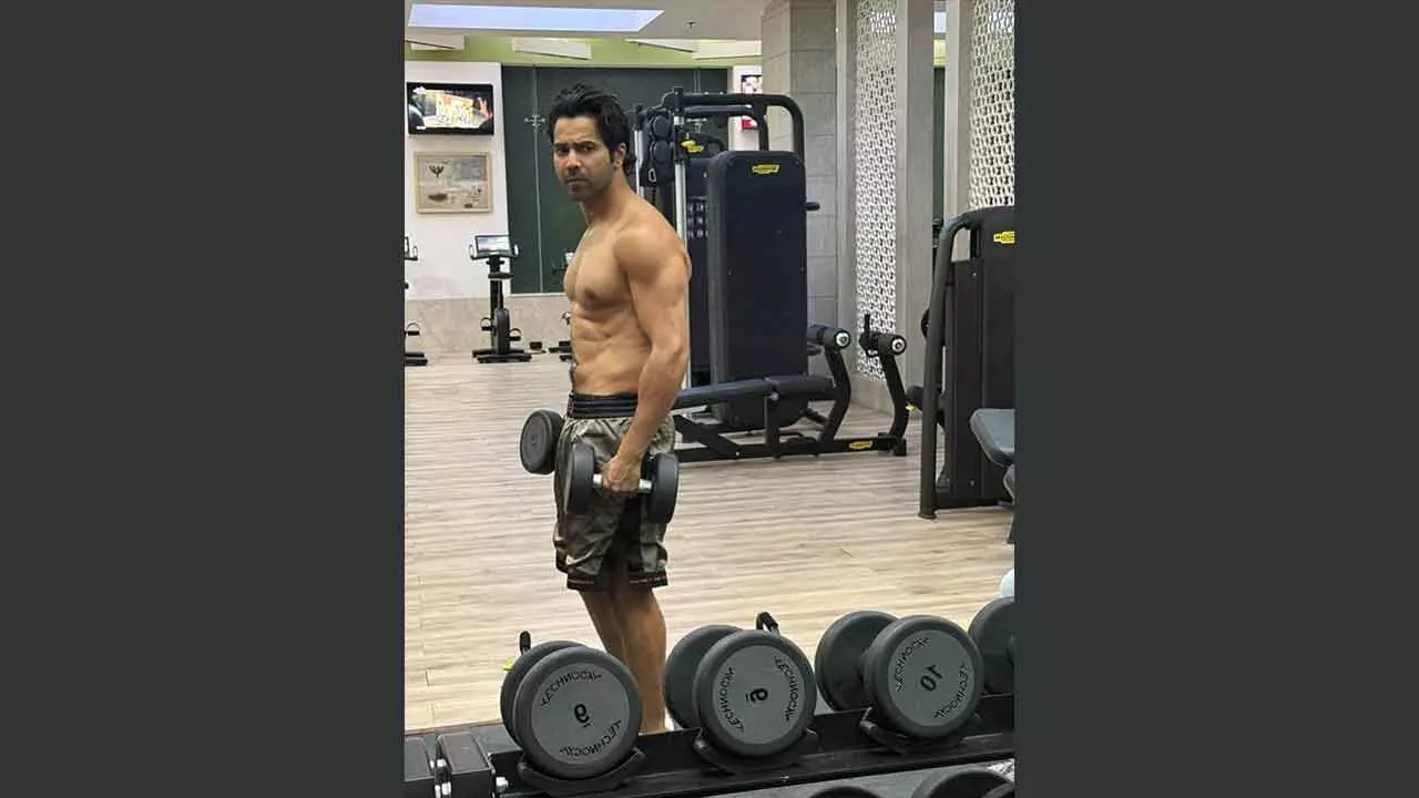 Bollywood actor Varun Dhawan grabbed attention on social media after sharing a striking mirror selfie from his latest gym session. Flaunting his sculpted physique, the actor was seen holding dumbbells while locking eyes with the mirror, showcasing his toned abs and muscular build.