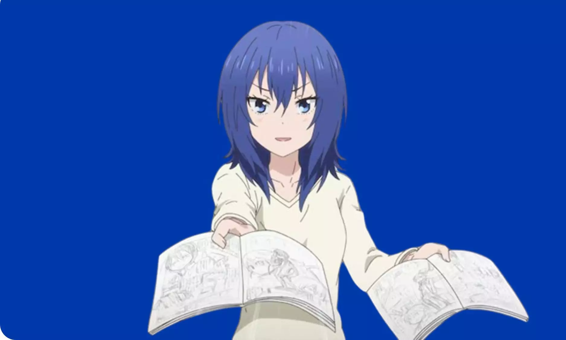 Chika is trying to come up with an idea for her next manga, but it’s hard. She feels stuck. Her friends notice this and tell her to use her real-life feelings and experiences to help shape her story.