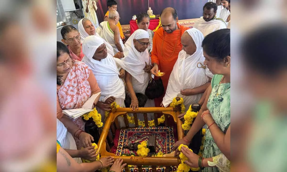 Ripponpet (Shivamogga district): The 2624th birth anniversary of Lord Mahavir, the 24th Tirthankara of Jainism, was observed with religious grandeur at the historic Jain pilgrimage centre of Hombuja on Wednesday. The celebrations were held under the spiritual leadership of Jagadguru Swasthishri Dr. Devendrakeerthi Bhattaraka Mahaswamiji, the head of the Hombuja Jain Math.