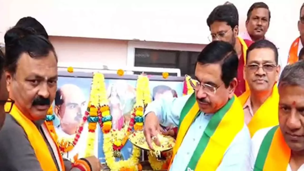 Mysuru: Union Minister for Food, Public Distribution, and Consumer Affairs, Pralhad Joshi, launched the BJP’s Janakrosh Yatra on Monday from the hometown of Karnataka Chief Minister Siddaramaiah. The campaign, which translates to "People's Anger March," is a four-phase protest aimed at highlighting what the BJP describes as rampant corruption, anti-people policies, and significant price hikes under the Congress-led Karnataka government.
