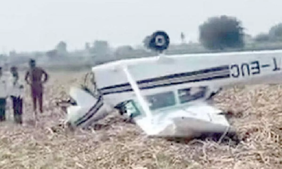 The two-seater aircraft belonging to Redbird Aviation in Kalaburagi crashed at Mangaluru village in Babaleshwar Taluk of Vijayapura district, they said.