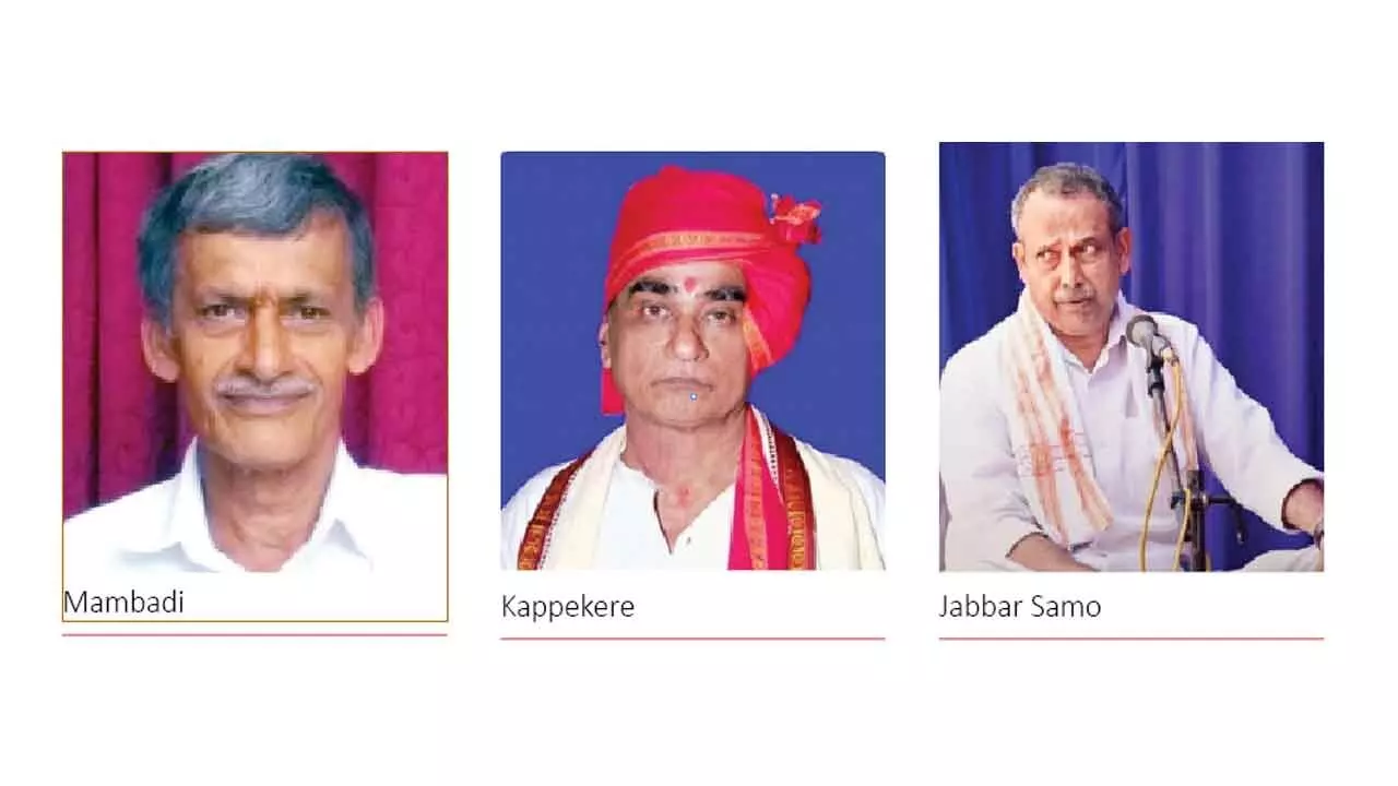 The prestigious award will be conferred on senior Badagutittu artiste Kappekere Subraya Bhagavata, Yakshagana teacher and percussionist Mambadi Subrahmanya Bhat, and noted Taala Maddale exponent Jabbar Samo.