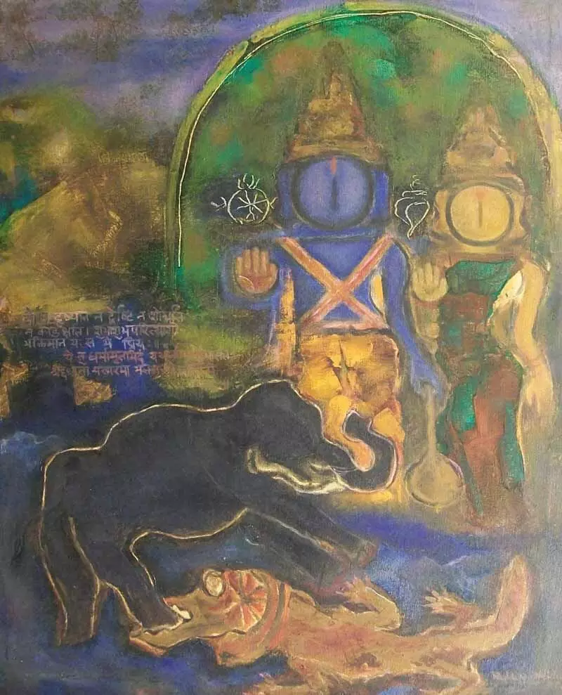 Ganapathy Hegde, Bharati Prajapati, Sangeeta Baid, Jai Khanna, Avinash Veeraraghavan, Leon, Bhiva Punekar, and Rabin Dutta (Bengal); alongside Telangana-based artists such as Srinivasulu, Surya Prakash, and Redappa Naidu . The showcase also includes works by modern masters like M. F. Husain, Yusuf Arakkal, V. S. Gaitonde, and S. M. Pandit, as well as traditional Tanjore & Mysore paintings like Ram Pattabhisheka & Vishnavite icons & sculptures like the Bhagavati of Kerala, and rare silver-filigree furniture and many more
