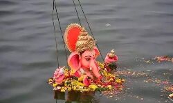 The devotees were seen chanting Jai Ganesha, Jai Ganesha and Ganapati Bappa morya when the Ganesh idol was slowly dipping in water.