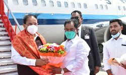 The Vice President of india M. Venkaiah Naidu welcomed by deputy chief minister K. Narayana Swamy in renigunta airport Tirupati .