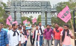 Hanumakonda District Kakatiya University TRSV president Byripaka prashanth and students made indecent remarks on Telangana Student leaders who made a Shiva Yatra with the effigy of Prime Minister Narendra Modi and burnt the effigy of Narendra Modi in front of the second gate of Kakatiya University Telangana State Handicapped Chairman Vasudeva Reddy participated in the event On Wednesday.