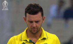 5.4 Hazlewood to de Kock, out Caught by Cummins!! Pressure, pressure! de Kock c Cummins b Hazlewood 3(14)