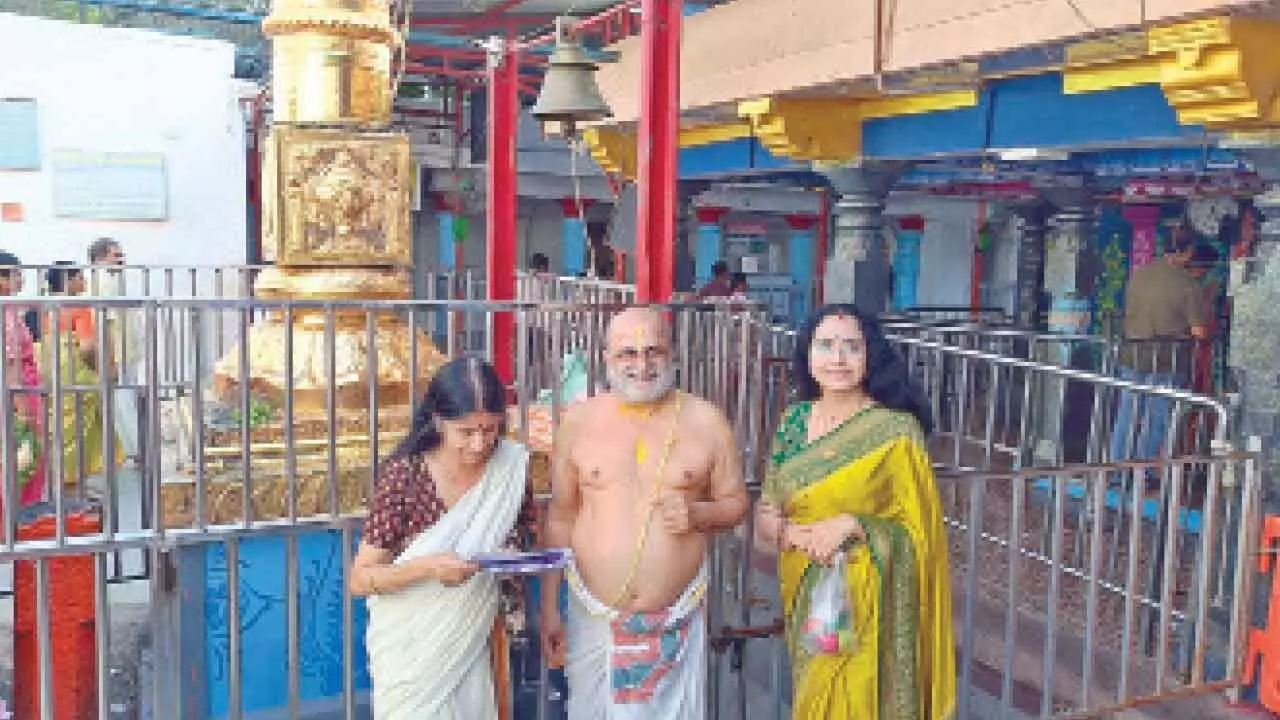 Hyderabad: Padma Shri Aswathi Thirunal Gowri Lakshmi Bayi, a distinguished member of the Travancore Royal Family on Monday, visited the sacred Chilkur Balaji Temple along with her family members.