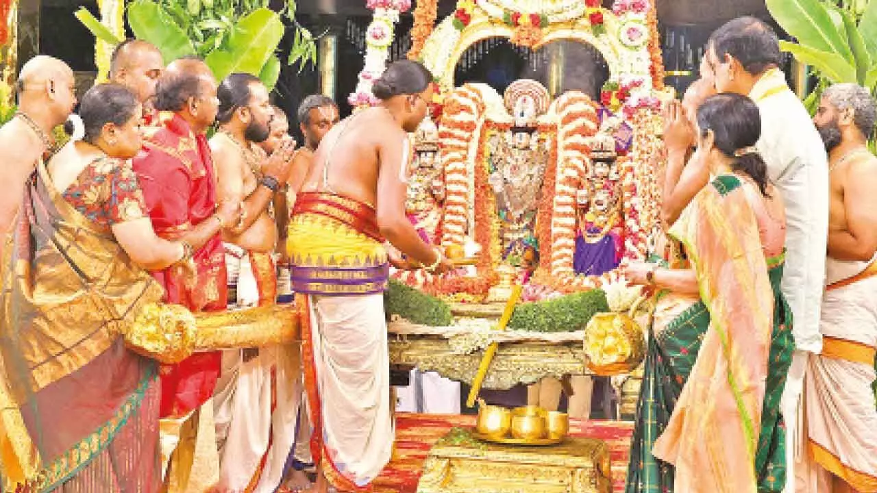 After a series of traditional events like Chaturveda Paarayanam-Raga-Tala- Sangeeta programs, in the presence of the finely decked Utsava murthies, the celestial wedding ceremony was observed. TTD Chairman BR Naidu, EO Syamala Rao, other officials, devotees were also present.