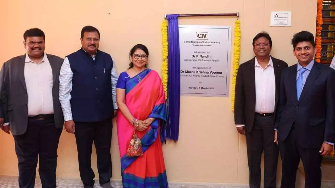 CII Southern Region Chairperson Dr Nandini inaugurated the new office here on Thursday, where Chairman Dr V Murali Krishna, CII Tirupati chairman Puushpit Garg, and CII Tirupati vice-chairman O Jagannath were also present.