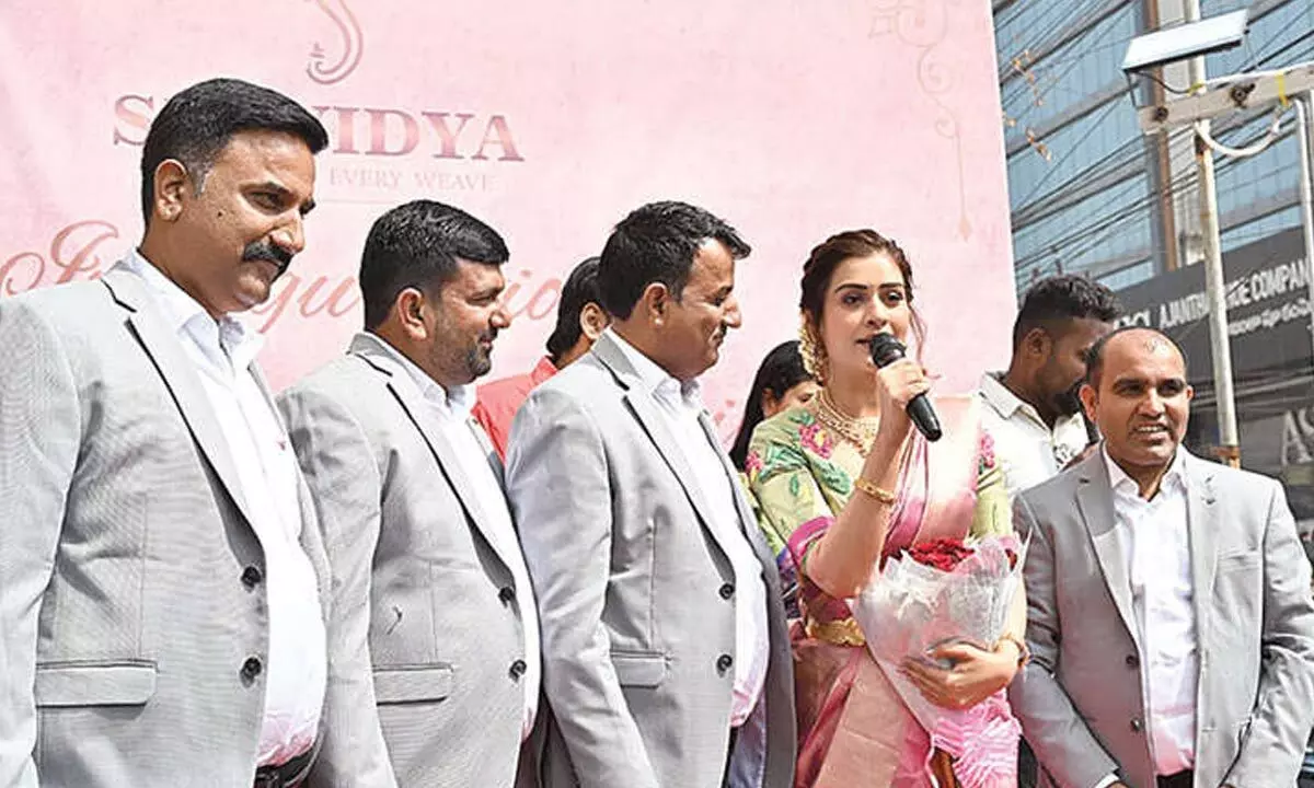 Vijayawada: Actress and celebrity guest Payal Rajput said she was delighted to witness the launch of Sri Vidya’s premium showroom here, noting that the brand beautifully blends the grace of traditional sarees with modern elegance. “Sri Vidya’s collection is truly mesmerising. The way traditional weaves are presented with contemporary sensibility is impressive, and it is wonderful to see such an exquisite range of ethnic wear under one roof,” she said at the inauguration.