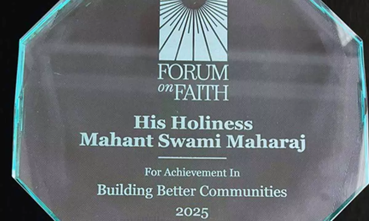 New York: Mahant Swami Maharaj, the spiritual leader of the worldwide BAPS Swaminarayan Sanstha, has been honoured with the distinguished 'Achievement in Building Better Communities' award at the Forum on Faith 2025 in New York City.
