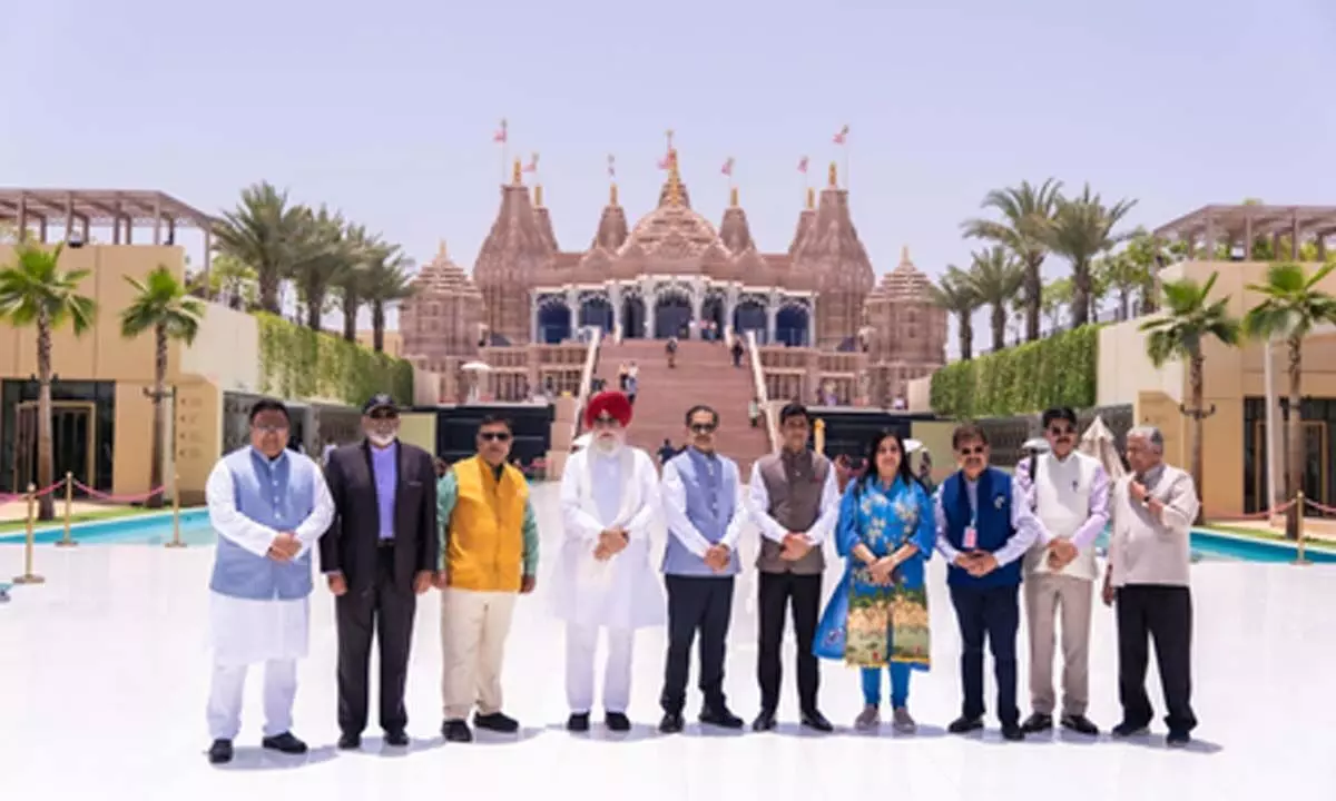 Abu Dhabi: The high-level all-party delegation from India led by Shiv Sena MP Shrikant Eknath Shinde on Friday paid obeisance at the Sheikh Zayed Grand Mosque, BAPS Hindu Temple and Guru Nanak Darbar Gurudwara in Abu Dhabi conveying a strong message of harmony, tolerance and peaceful coexistence - the values shared and cherished by India and the United Arab Emirates (UAE).