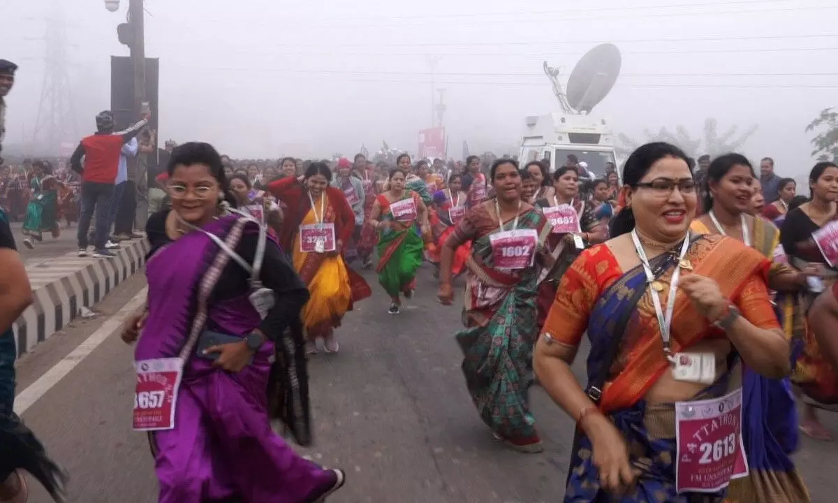 Odisha capital Bhubaneswar on Saturday witnessed a unique mini-marathon with nearly 6,000 women wearing traditional sarees taking part in the run from Shikharchandi temple square to KISS athletics stadium.