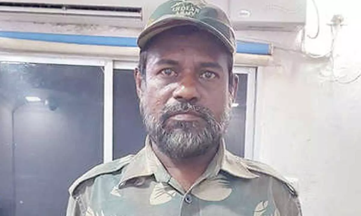 The accused was apprehended on Monday after some alert citizens spotted him moving suspiciously in military uniform in Gandhi Nagar area. His tangled tale began to unravel after he was taken to Town police station.