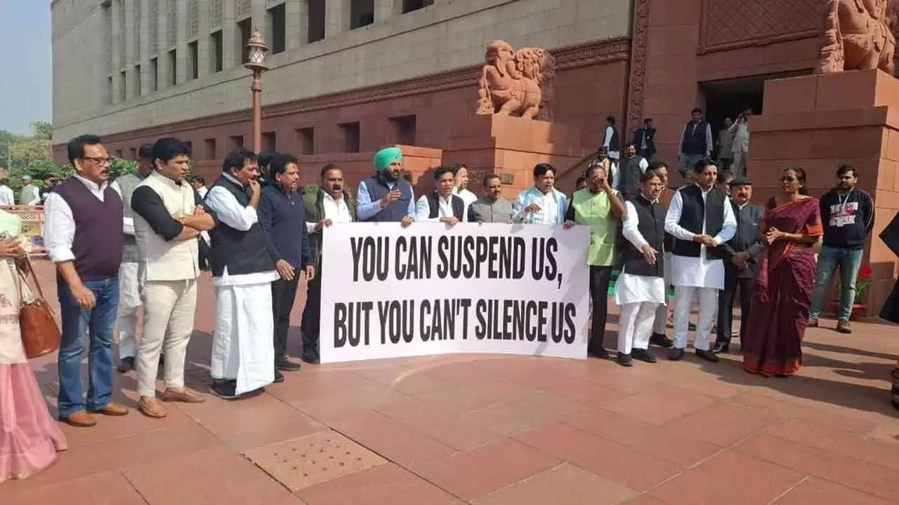 Those suspended MPs protested outside the main Parliament building today with a placard that read: "You can suspend us but you cannot silence us", while the BJP's SP Singh Baghel, the junior Fisheries Minister, countered, "The Speaker is a responsible person and made a statement about opposition MPs based on facts. In the past few sessions, we have seen opposition MPs become increasingly aggressive and willing to go to any lengths during protests."