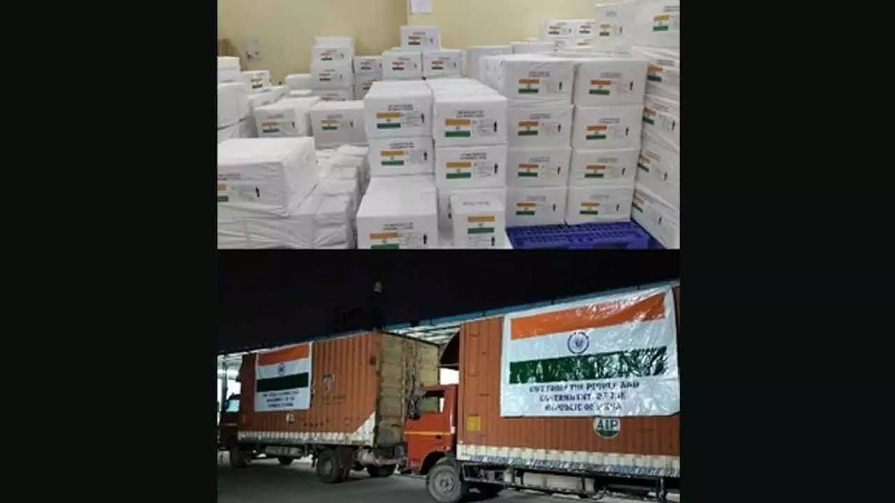 "The consignment comprising medical supplies and disaster relief material including surgical supplies, glucometers, oximeters, gloves, syringes and IV fluids, blankets, sleeping mats and hygiene kits has departed from India," the MEA stated.