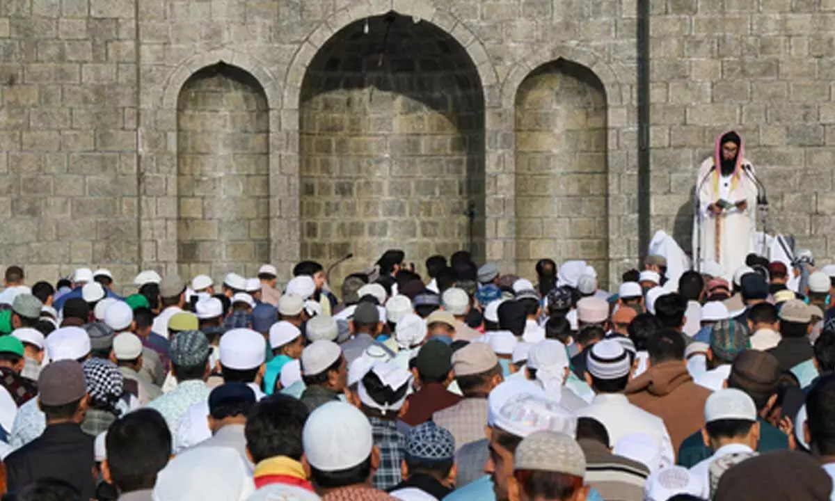 Srinagar/Jammu: Large gatherings were seen on Saturday at the Eid congregational prayers throughout the Kashmir Valley and in the Jammu division as devotees came out in large numbers for the thanksgiving prayer after the completion of the holy month of Ramadan.