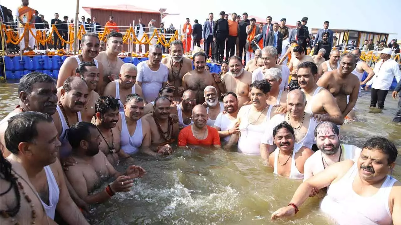 Mahakumbh Nagar: Uttar Pradesh Chief Minister Yogi Adityanath along with his Cabinet on Wednesday took a dip in the Triveni Sangam during the ongoing Maha Kumbh Mela.
