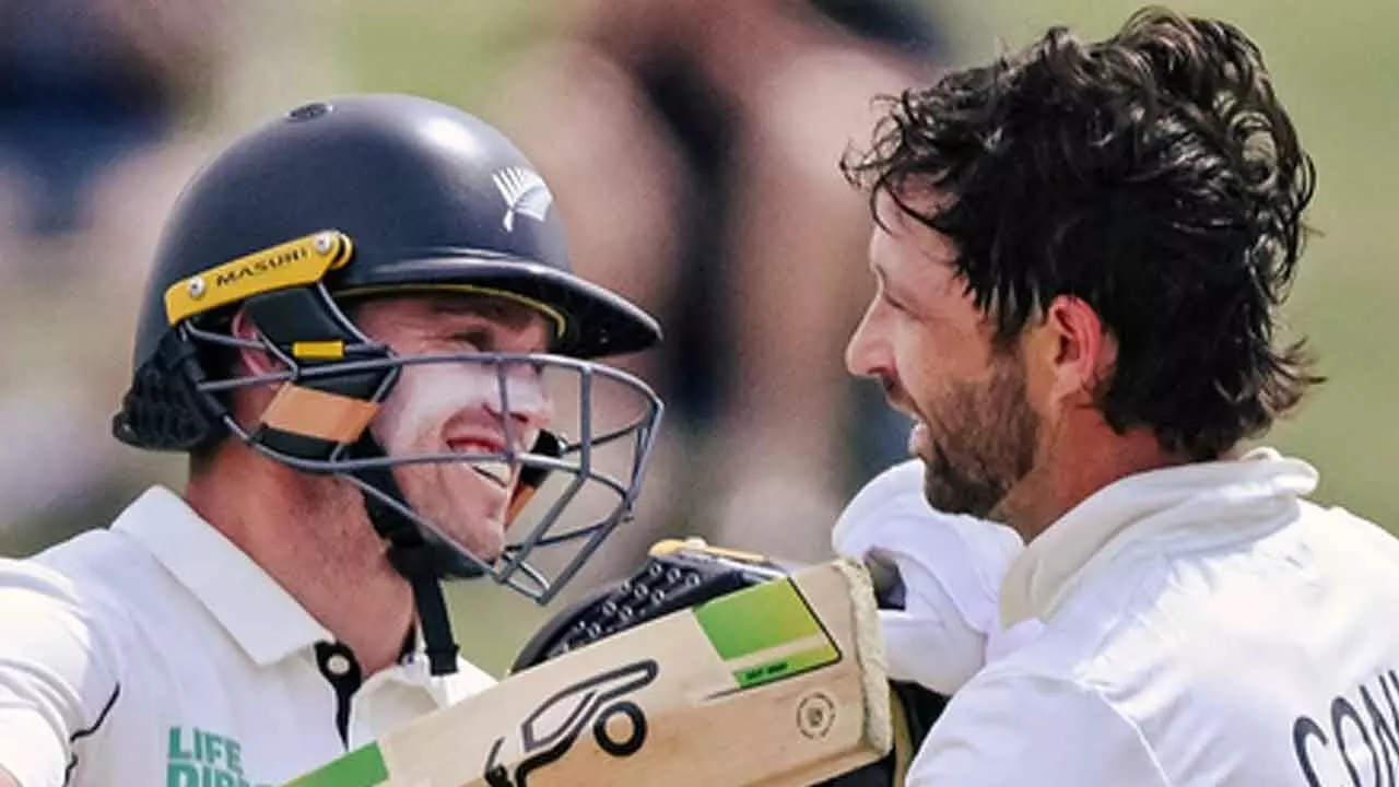 Conway (100) etched his name into history with a rare and outstanding feat as he became the first New Zealander to score both a double-century and a century in a Test match. He followed up his magnificent 227 in the first innings with a composed 100 in the second, reaching the milestone shortly before tea on Day 4.