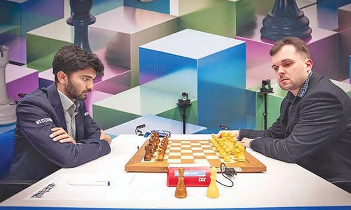 Wijk Aan Zee (The Netherlands): WorldChampion D Gukesh bounced back after two back-to-back losses and put it across Vladimir Fedoseev of Slovenia in the eighthround of the Tata Steel Masters here Monday. Gukesh won handsomely with black pieces which should do a world of good to his confidence. The Indian ace had been playing well till the first rest day and then lost two games in a row and finally pulled one back. It was a picturesque finish when Gukesh put his rook emprise and finished the game in 41 moves. On a day when Arjun Erigaisi survived a difficult position against compatriot Aravindh Chithambaram and settled for a draw, R Praggnanandhaa escaped in a pawn down endgame to hold youngster Yagiz Kaan Erdogmus of Turkey.