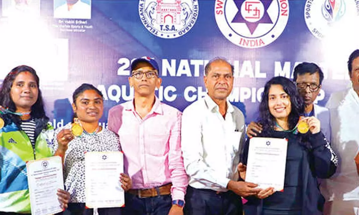Hyderabad: The 21st National Masters Aquatic Championship 2025, organised by the Telangana Swimming Association, concluded on a high note at the Aquatic Complex, GMC Balayogi Stadium, Gachibowli here on Sunday. The three-day championship witnessed impressive performances from seasoned swimmers across the country, with Telangana athletes delivering standout results. Ex-national medalist Sakshi Yadav dominated the women’s 30–34 category by winning three gold medals — in 50m freestyle, 4x50m medley relay and 4x50m freestyle relay. Telangana’s relay team, featuring Sakshi, K. Srinija, J. Bhavani and K. Lavanya, clinched gold in the 4x50m freestyle with a time of 3:19.41, ahead of Maharashtra and Karnataka. In women’s events, Telangana swimmers continued their strong showing. Preeti Ramdas secured silver in both the 100m butterfly (40–45) and 50m butterfly, while Sunitha Reddy added a bronze in the 100m butterfly. In breaststroke events, Ruju Doshi earned a bronze in the 100m breast (50–54) and later a silver in the 50m breast.