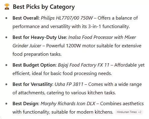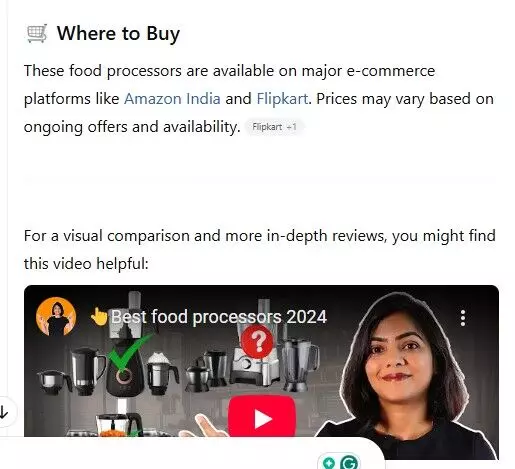 During our testing on a free ChatGPT account, we found a mix of functional links and product names. For example, while recommendations for Amazon India and Flipkart worked correctly, other brand product names were offered, along with a comparison with similar products. Additionally, a YouTube video was also displayed. You can find the screenshots of our ChatGPT testing.