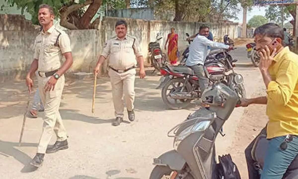 Police security at 10th Class examination centre in Nakrekal on Saturday