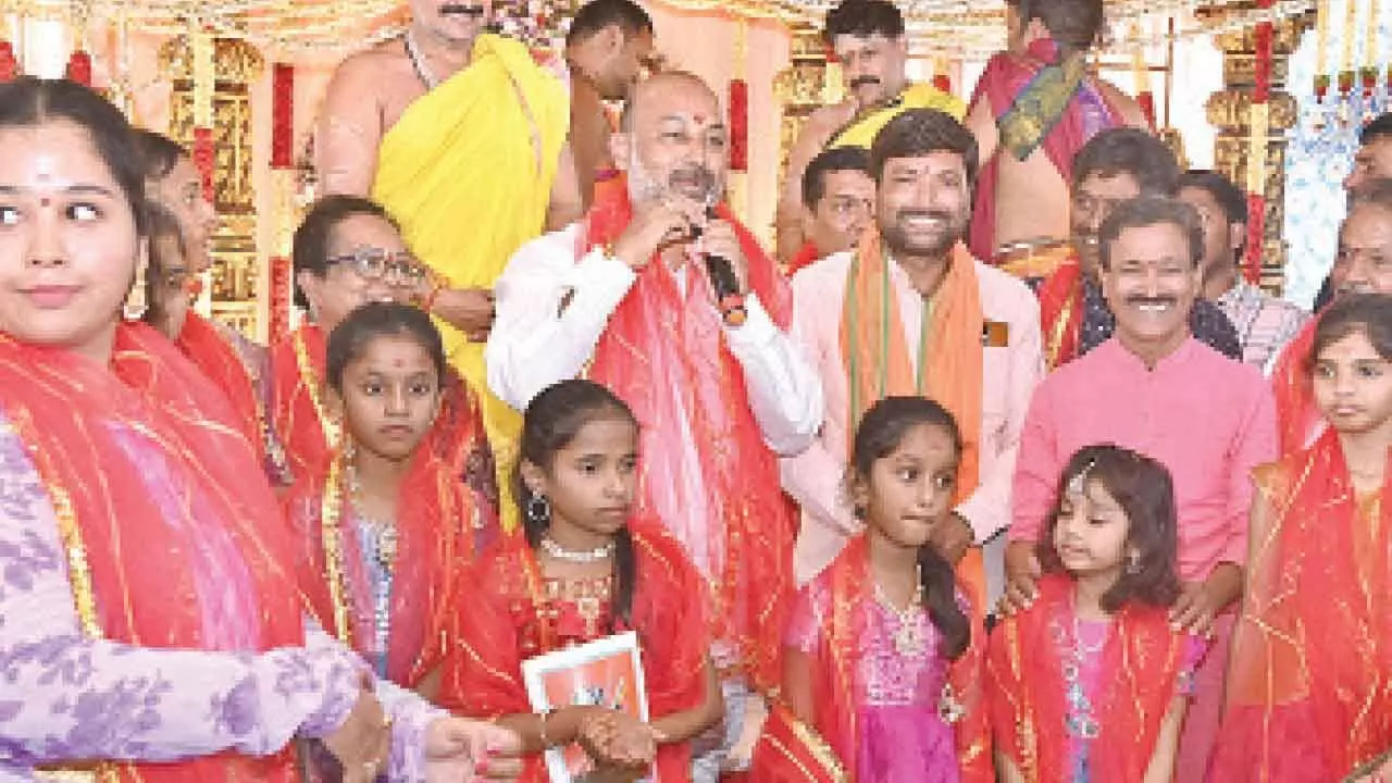 Karimnagar: Union Minister of State for Home Affairs Bandi Sanjay Kumar on Thursday released videos of two Rashtriya Swayamsevak Sangh (RSS) songs he rendered, titled “Galamethi Paadali” and “Matrumurthi Padhala Mundara”, in Karimnagar.