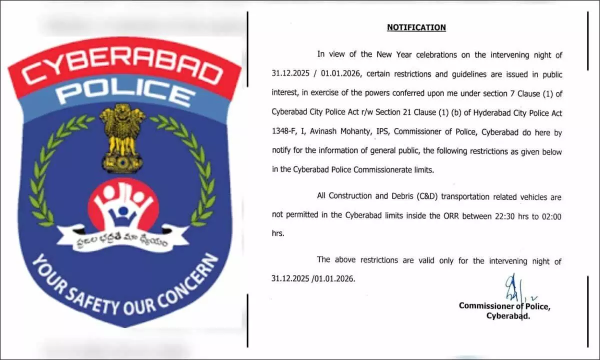 In preparation for the New Year festivities, Cyberabad Police have announced a series of guidelines aimed at ensuring public safety.