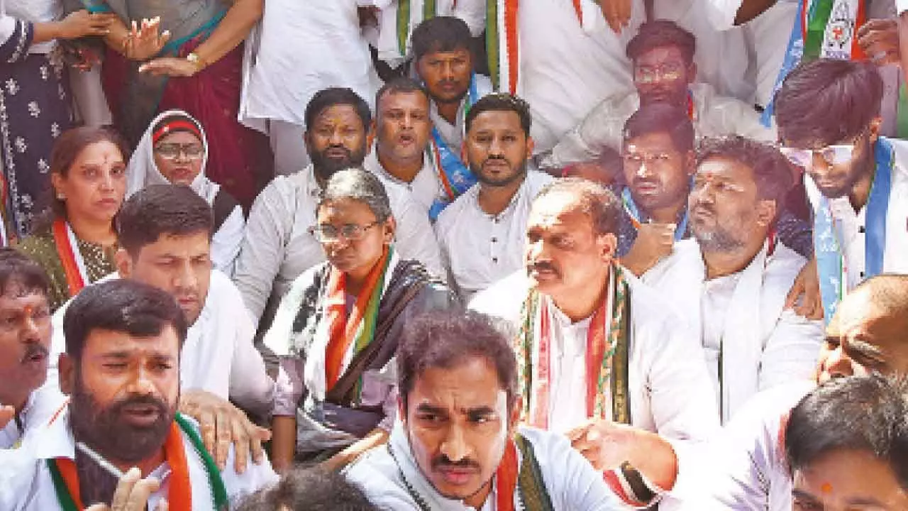 Cong stages dharnas at Gandhi Bhavan, BJP offices across state