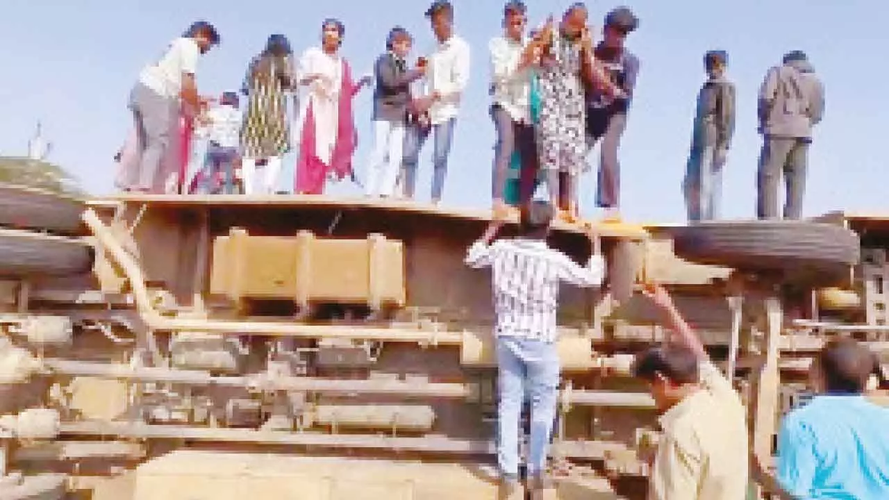 According to the observers, a speeding car rammed into the bus from behind and the driver of the bus lost control over the vehicle and the bus overturned after hitting the divider, injuring many students in the accident