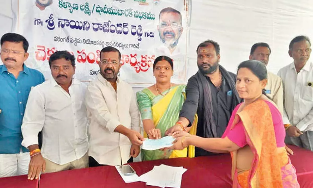 On Friday, at his camp office in Balasamudram, Hanumakonda, the MLA distributed cheques worth ₹84,09,744 under the Kalyana Lakshmi and Shaadi Mubarak schemes to 84 beneficiaries belonging to Kazipet and Hanumakonda mandals.
