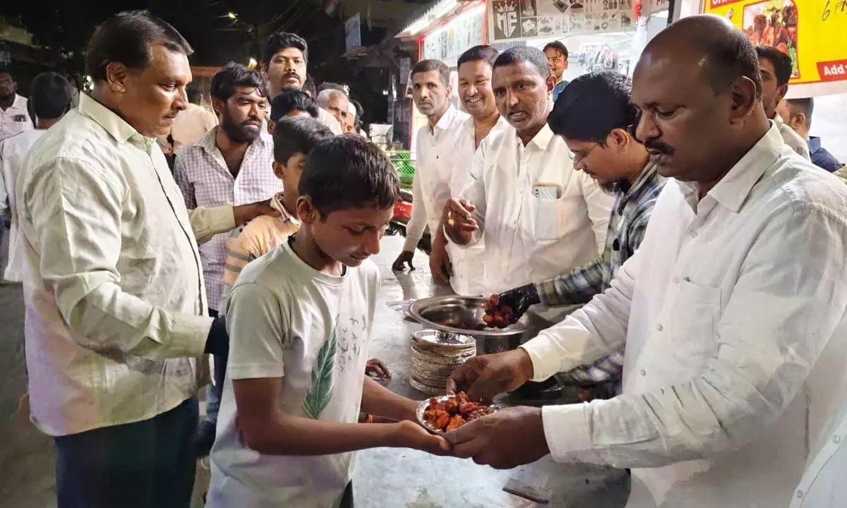 On Sunday, the owners of Asma Poultry Farm conducted a chicken mela in Kummariwada and RB Nagar in Bhongirand distributed free chicken pakodi. As soon as people heard about the free distribution, they rushed to the shops. Around 200 kg of chicken pakodiwas distributed. The snacks vanished in just 30 minutes as massive crowd thronged the shops.