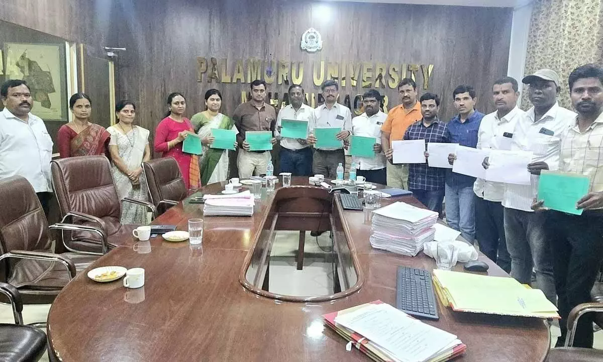 College Principal and Controller of Examinations Dr. P. Ramulu, along with his faculty team, participated in the result release event held at Palamuru University. The results were unveiled by University Registrar Prof. Ramesh Babu, Controller of Examinations Dr. K. Raj Kumar, and Additional Controllers Shanti Priya and Anuradha Reddy.